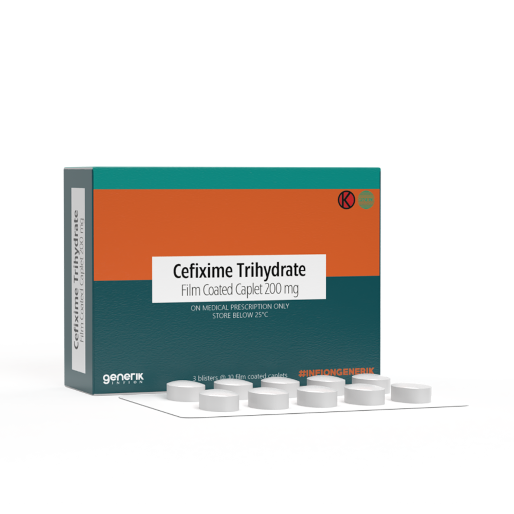 Composition : Each Cefixime Trihydrate Film coated caplet 200 mg contains Cefixime trihydrate equivalent to Cefixime anhydrate 200 mg.